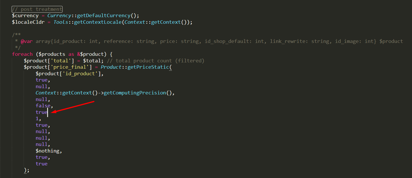 Considerando la modificación que ha sufrido el archivo AdminProductDataProvider.php vamos a contemplar, modificando nuevamente el bloque de código, teniendo presente que la versión actual de tu sitio web de PrestaShop es 8.2.3