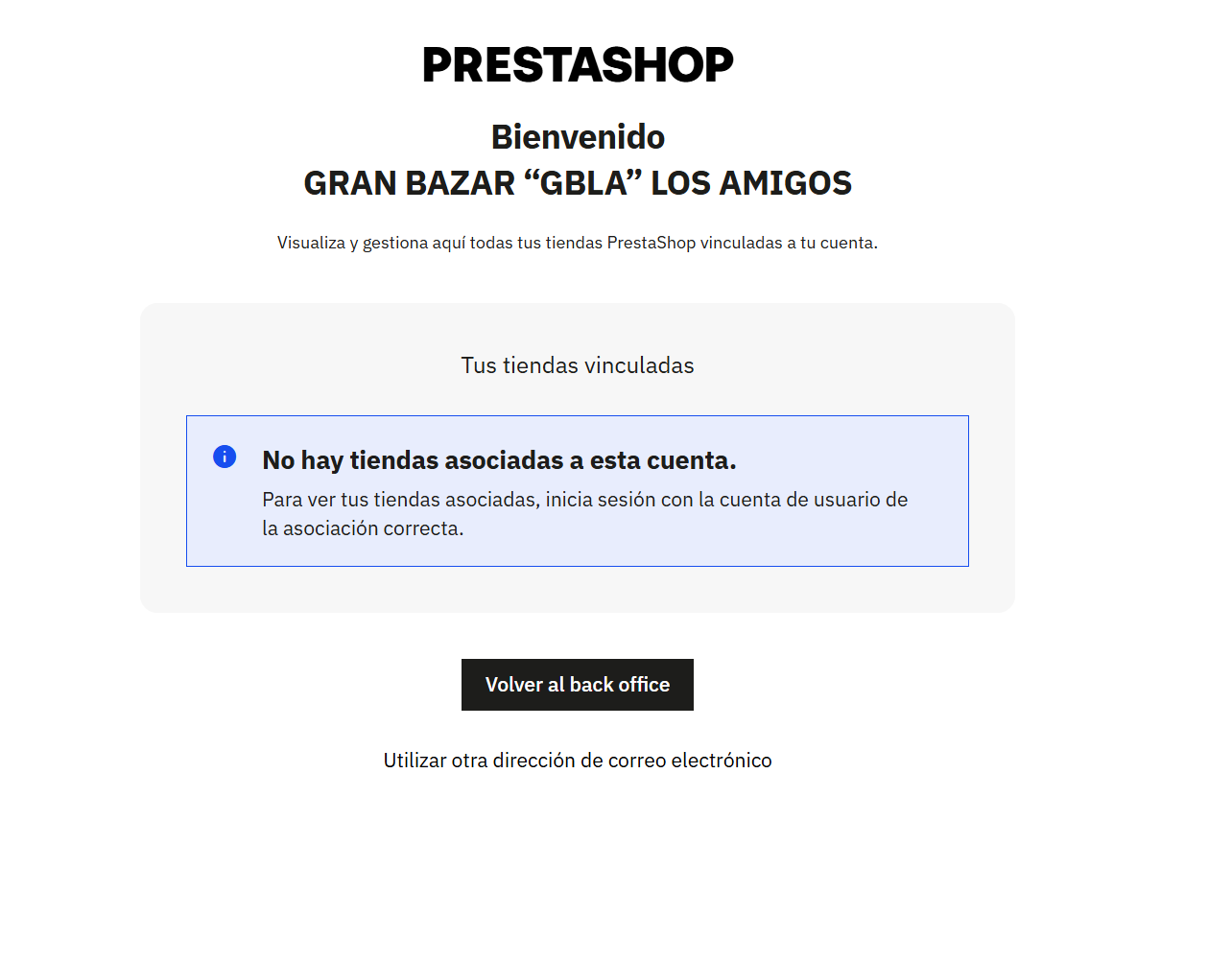 Eso es porque tienes varias cuentas de Prestashop y estás accediendo a una que no tiene nada vinculado.