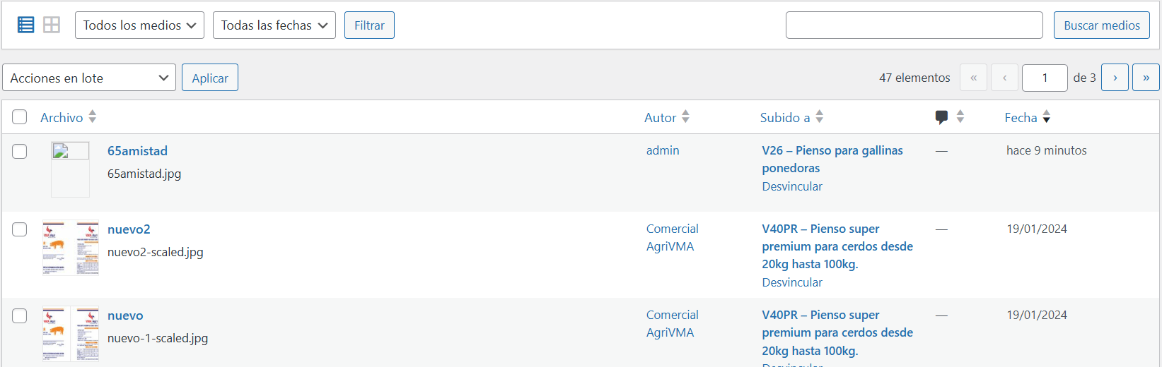 Saludos, subo archivos a la biblioteca de medios ya sea por el WebPanel o por el admin del sitio y no se ve la imagen, que es lo que subo.