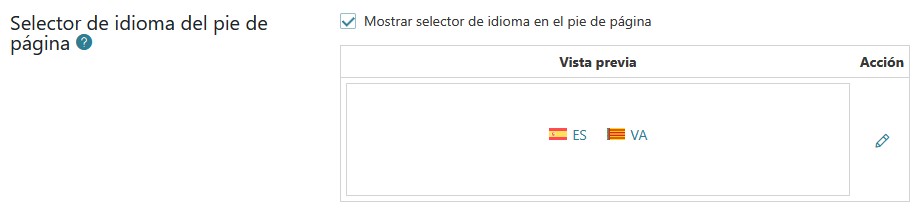 Por cierto, esta es la configuración que menciono sobre que aparezca el idioma en el footer. No hay distinción para escritorio y móvil, y antes funcionaba corerctamenet. El botón de "editar" hace referencia a colores, tamaño de banderita, etc., nada relevante.