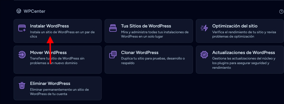 Una vez creado el subdominio, desde WPCenter podrás instalar un WordPress en ese subdominio