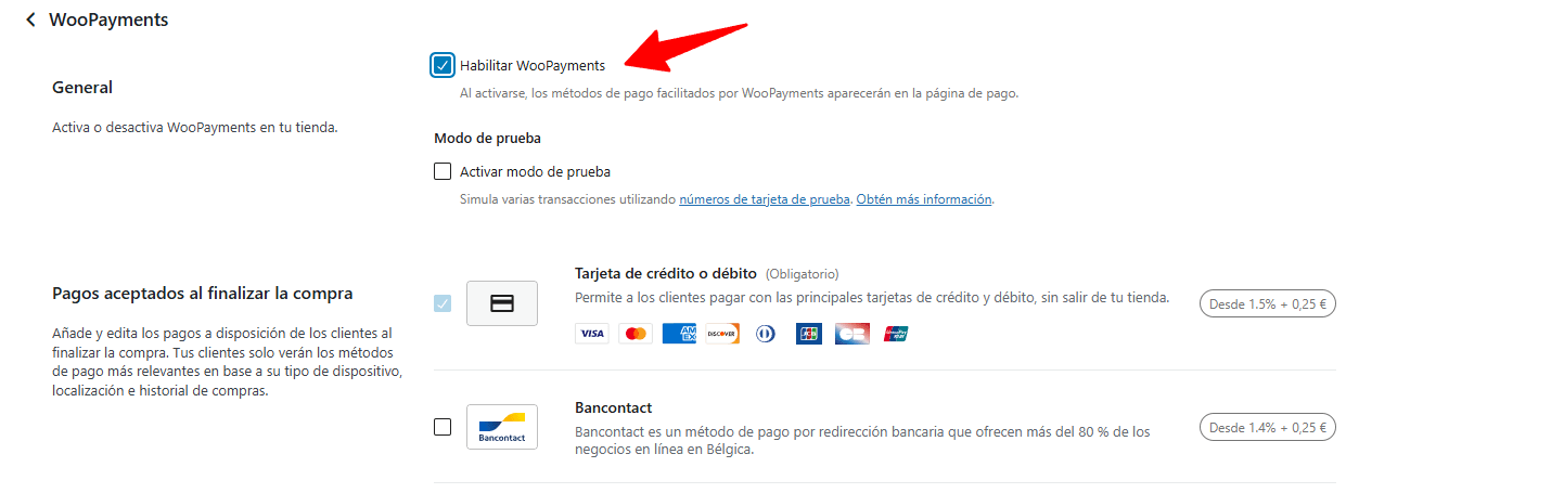 La pasarela de pago «WooPayments» acaba de activarse en este sitio: