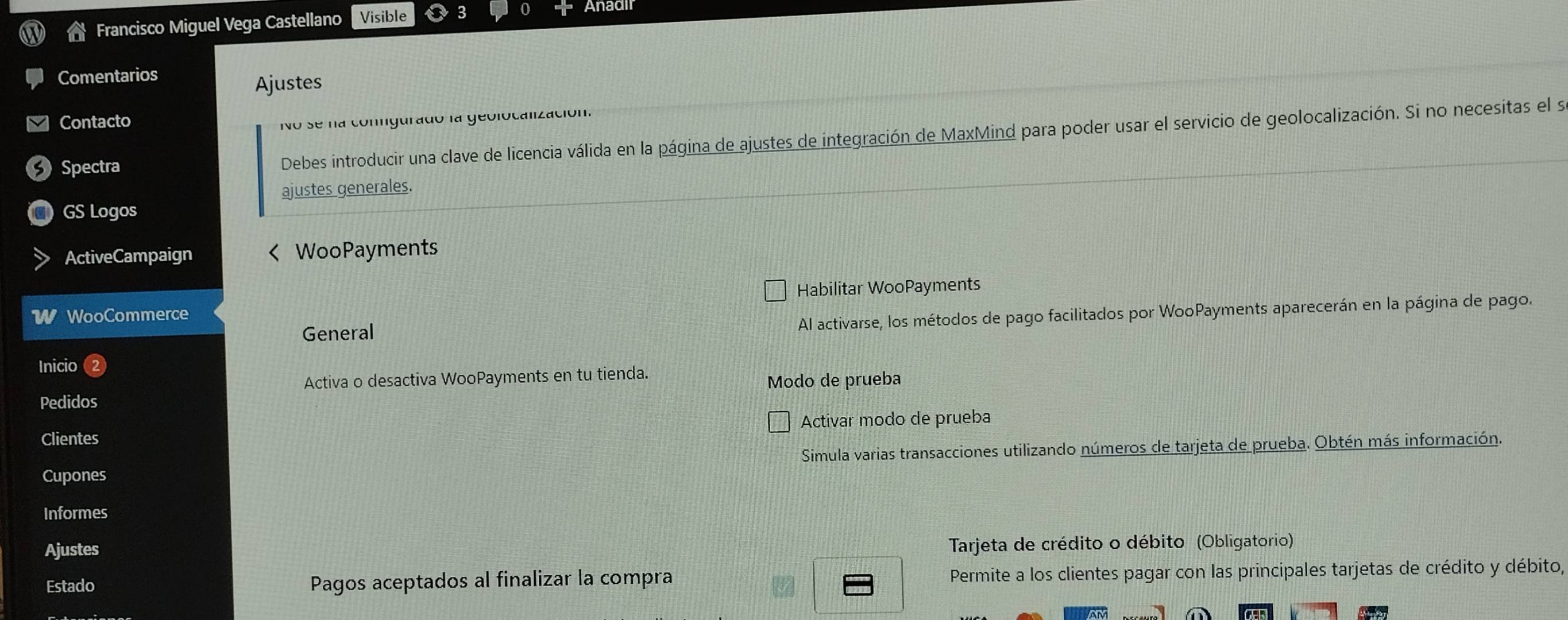 Con respecto a tu respuesta del apartado 2, donde me recomiendas desactive WooCommerce Payments, ¿te refieres a WooPayments, plugin que tengo activado, por favor?.