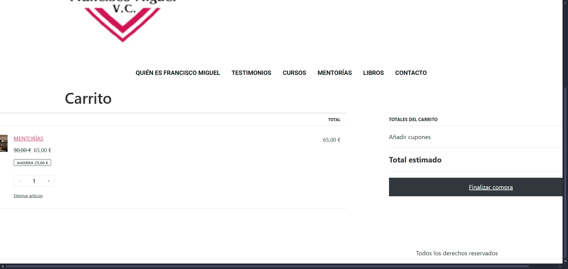 Primero que nada, estoy un poco confuso, porque observo que la página del carrito está vacía y sin embargo, como prueba, desde la tienda se le envían productos.