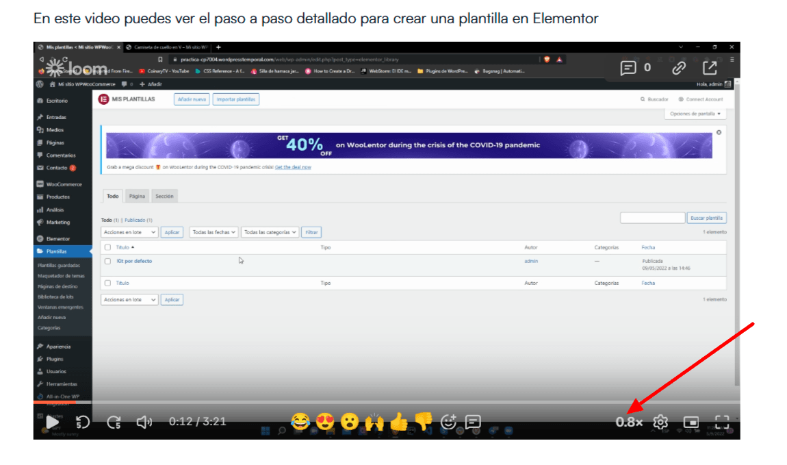 Ya en la segunda parte, al realizar las configuraciones del plugin desde el apartado de Woolentor → Settings → WooCommerce Template, observo que en el vídeo aparece "plantilla woo", ¿es una genérica que creaste como ejemplo?.