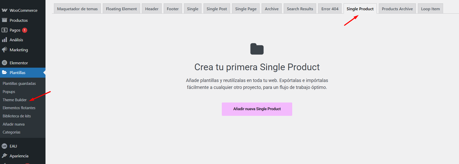 La plantilla del video que se llama plantilla productos Woo, es la plantilla general de como se van a ver los productos, en tu caso si sigues viendo el video en el mismo se crea la plantilla de pagina de tienda (que es la intención principal del tema: Cómo editar la página de la tienda.) Ten en cuenta seguir los pasos de la guía, no te quedes estancado en un punto por qué esto que nos consultas: