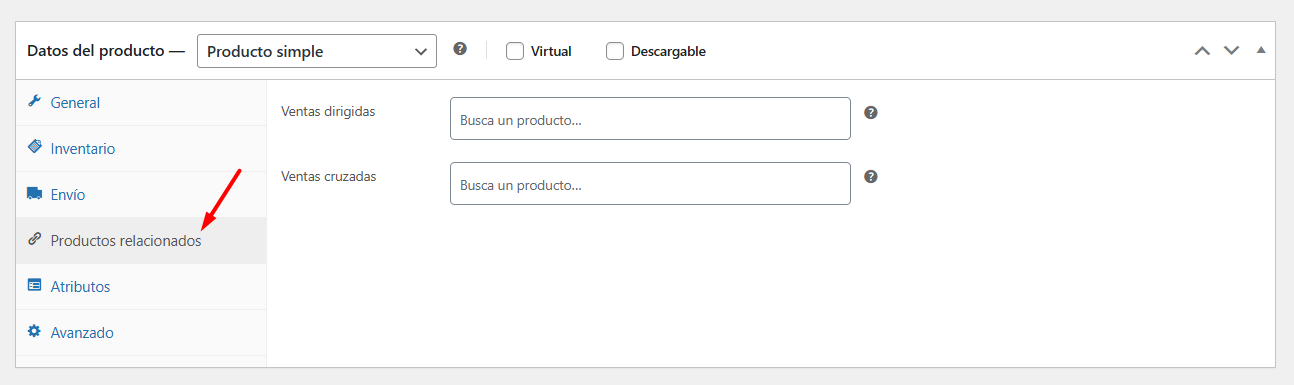 Sin embargo, tambien es posible relacionar los productos de forma manual directamente desde las opciones de configuración del propio producto