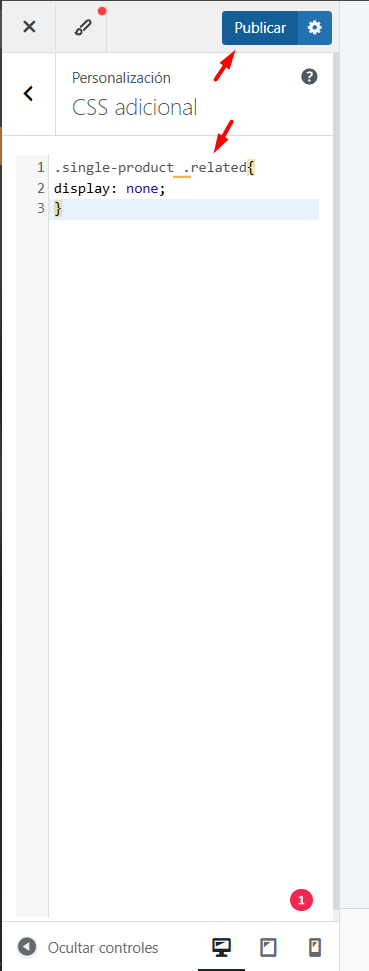 Si deseas ocultar los productos relacionados de la vista detalle de tus productos tal como menciono mi compañera vamos a emplear estilos CSS para hacerlo