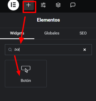 Veo que ese es el editor habitual de WordPress (gutenberg) entonces para este caso donde quieras agregar el botón debes ir a la parte superior izquierda al signo de +: