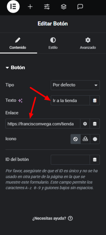 Por ejemplo, solo seria que ingreses al producto que quieres enlazar, copies la URL, es decir, él https://franciscomvega.com/producto/mentorias, y este lo pegues donde ahora estás utilizando el de /tienda. Si no me explique muy bien te lo resumo un poco: