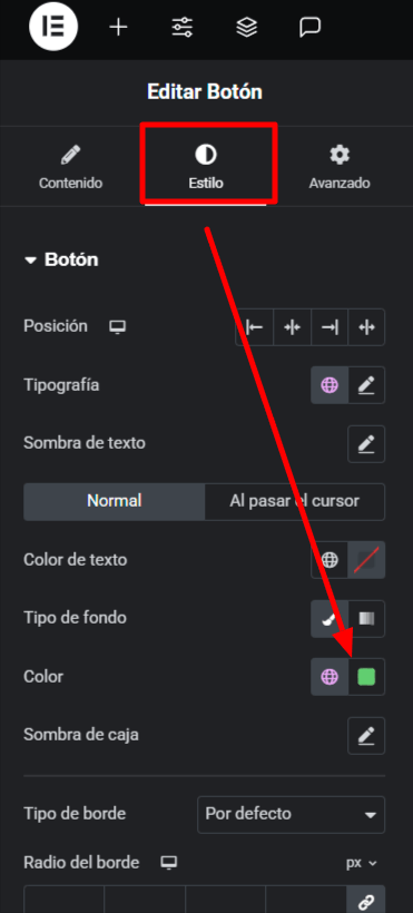 Para el color haces clic en estilo de ese botón y luego aquí: