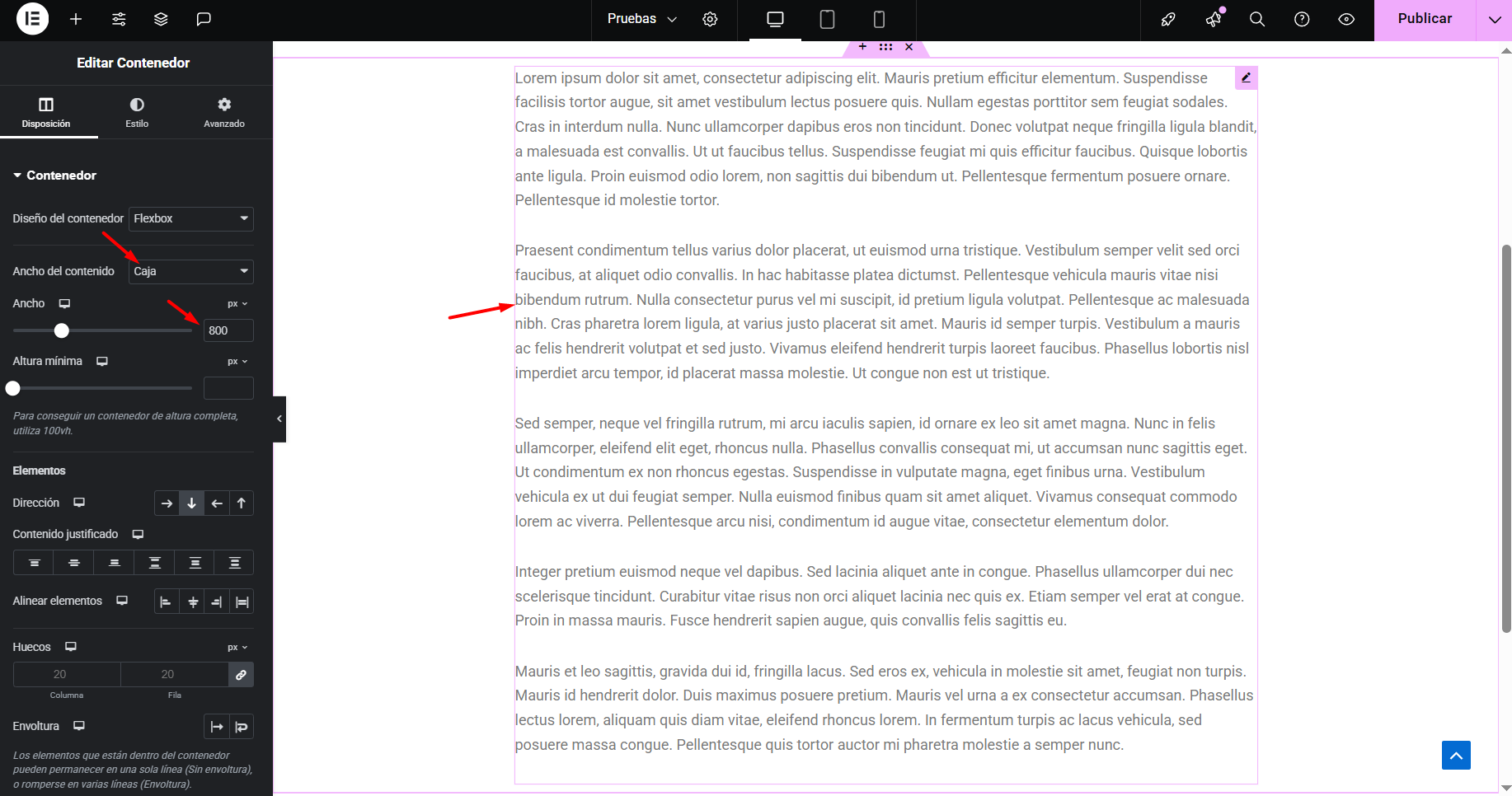 Por otro lado desde los contenedores de elementor tienes la potestad de definir su ancho maximo haciendo que todo el contenido se vea mas centrado, por ejemplo