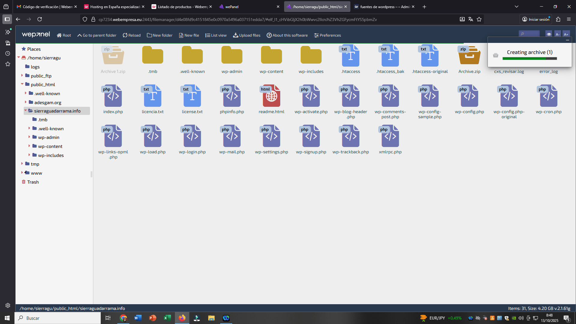 4276 MB en el fichero /home/sierragu/public_html/sierraguadarrama.info/Archive\ 1.zip