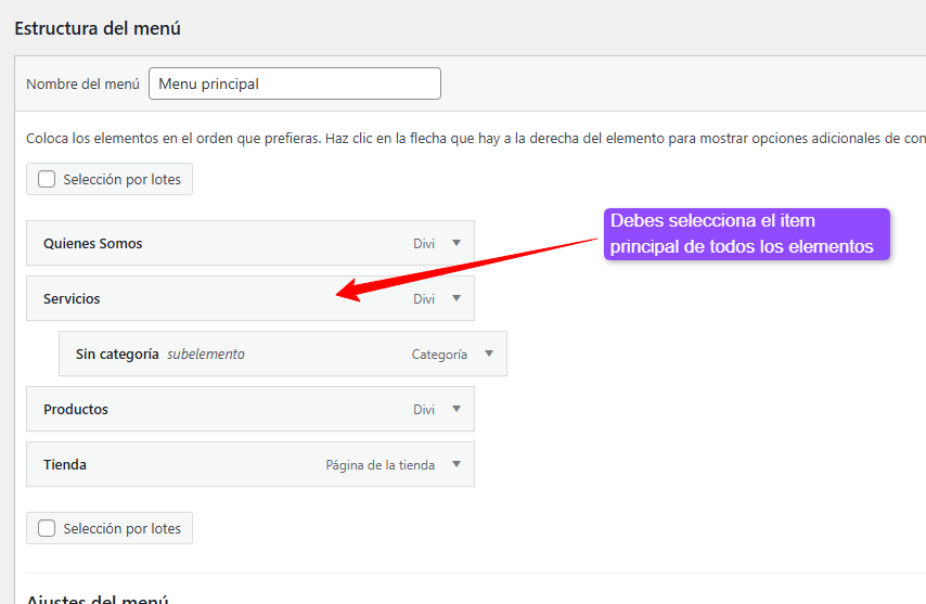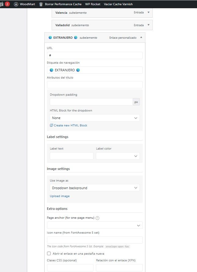 .- Selecciona el item del menu que quieres convertir en megamenu, por ejemplo Viajes
