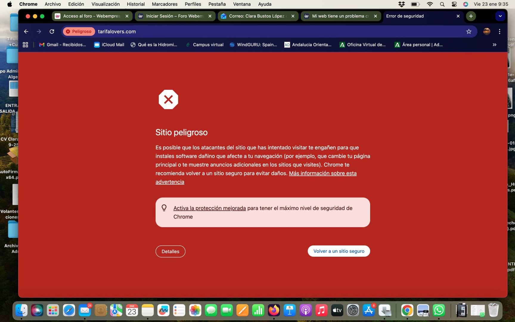 Buenos días, ayer no pude conectarme, este es el mensaje que sale en mi web desde hace una semana , he pedido como 5 revisiones a google y no hay forma... he actualizado todo, he comprobado con vosotros que no haya ningún virus, he eliminado por completo el plugin GTM4WP - A Google Tag Manager como me dijo Pepe y después de eso me vuelven a denegar con el último problema que os puse, soy bastante nula en esto y me estoy volviendo loca la verdad