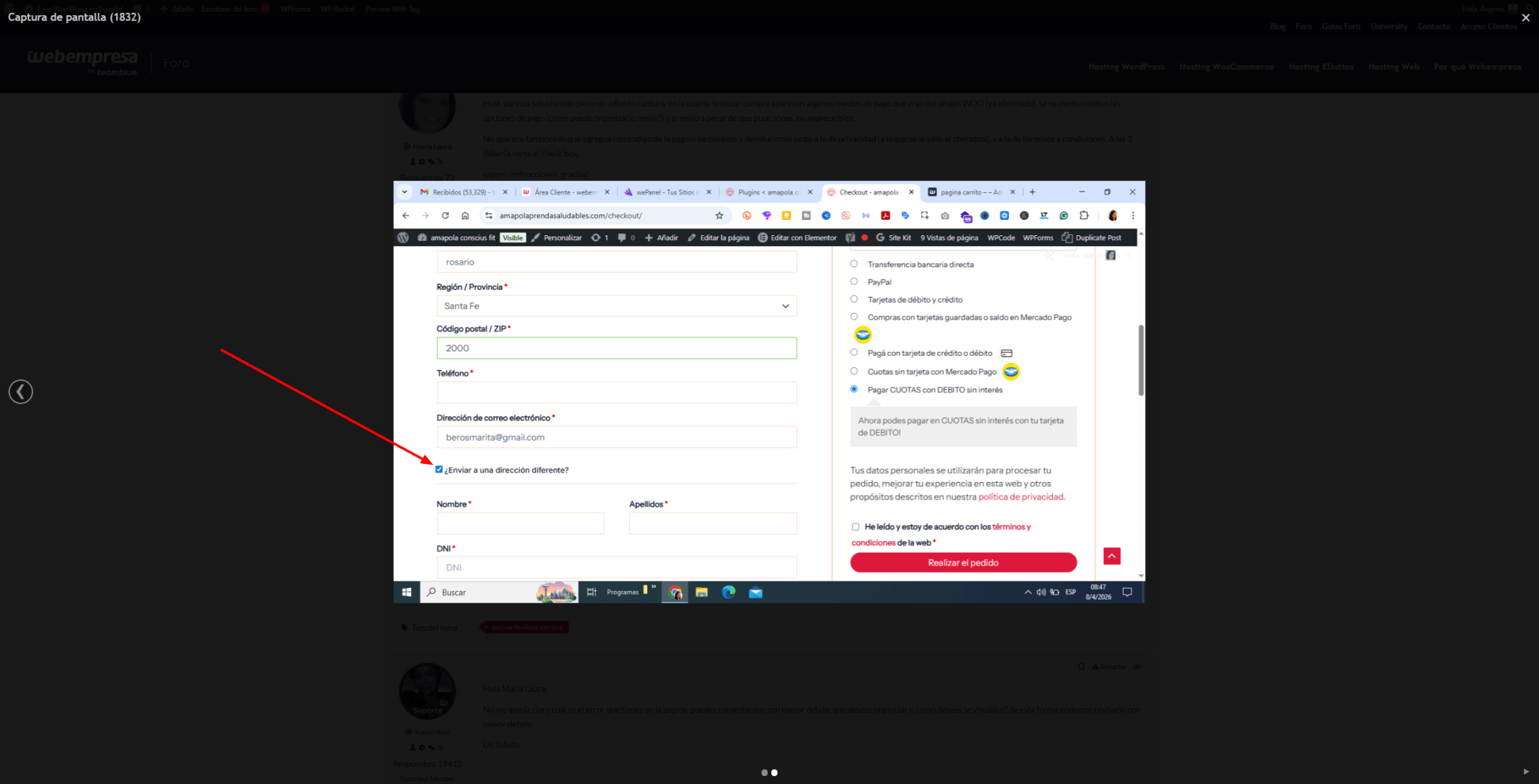 Hola, parecia solucionado pero no: adjunto captura, en la pagina finalizar compra aparecen algunos medios de pago que eran del plugin WOO (ya eliminado), se ve medio caotico las opciones de pago (como puedo organizarlo mejor?) y el envio a pesar de que puse zonas, no aparece bien.