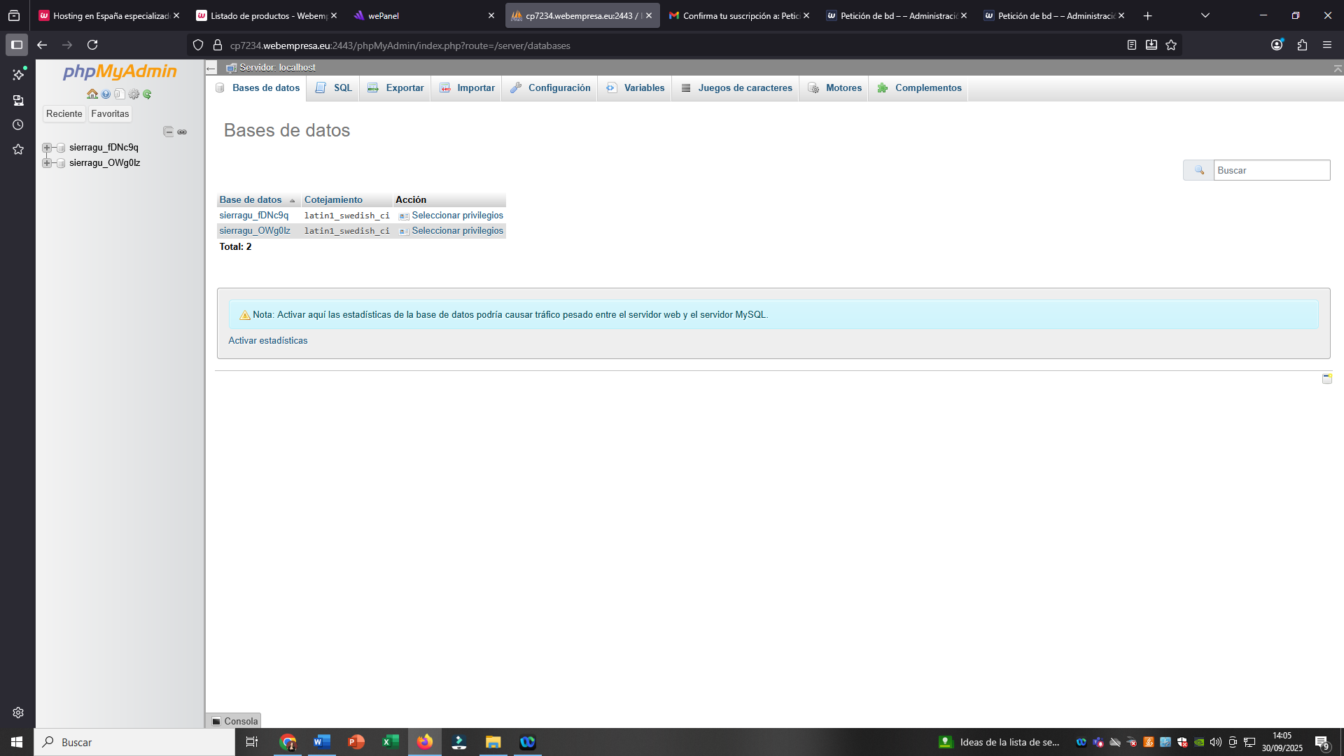 .- Accede a tu cuneta de WePanel -> bases de datos -> PhpMyAdmin