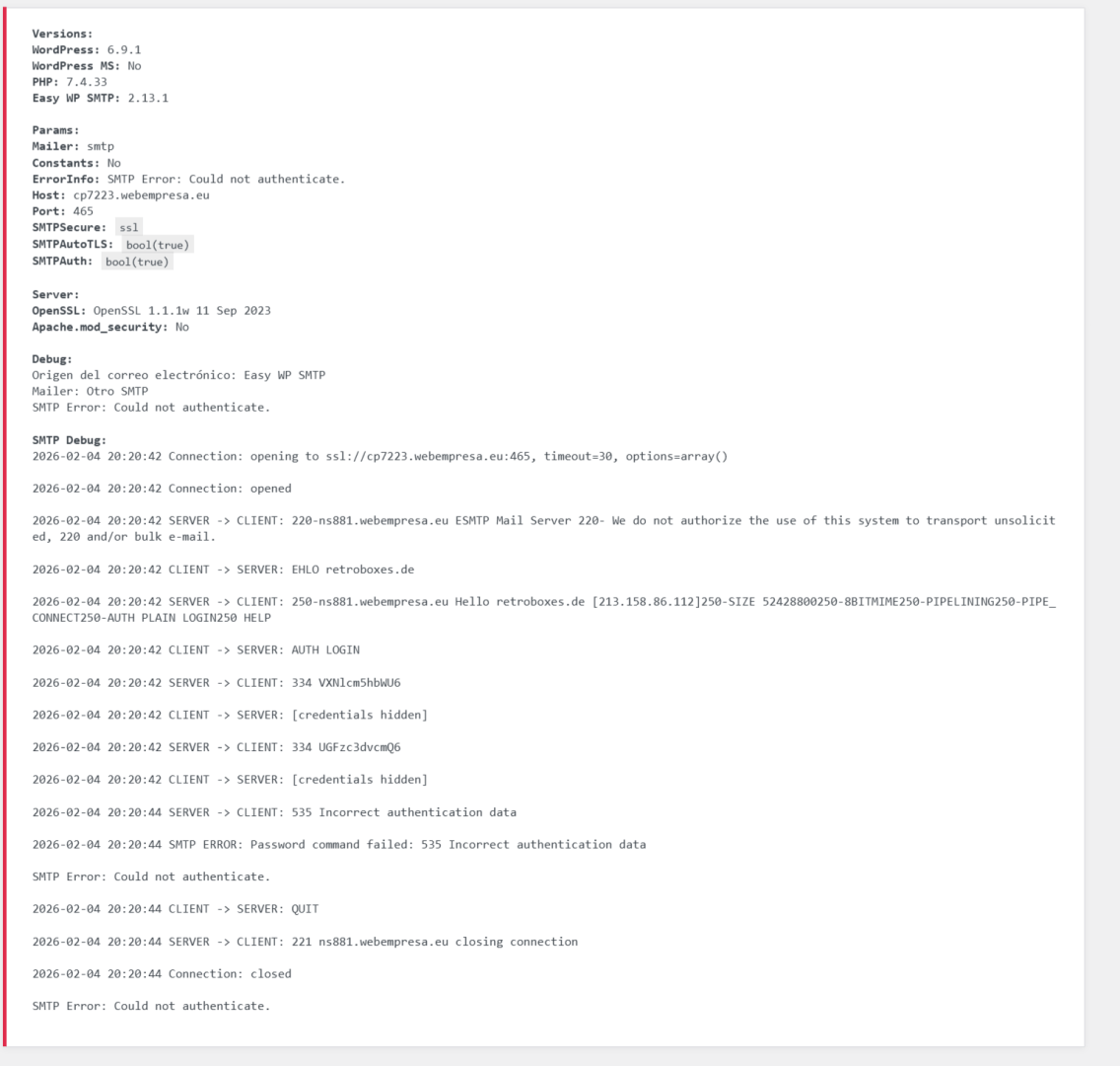 He actualizado la versión de las 4 webs a la versión 8.2 y las 4 web se han caído, las he vuelto a poner en la versión 7.4 y vuelven a funcionar, no se que puede ocurrir ahora si aconsejáis actualizar la versión a una superior ¿Qué problemas puedo tener, sobre todo con el asunto de este tema que es volver a usar wordpress + "Easy WP SMTP" para los envíos de emails transaccionales? y eliminar a Brevo para estas funciones.