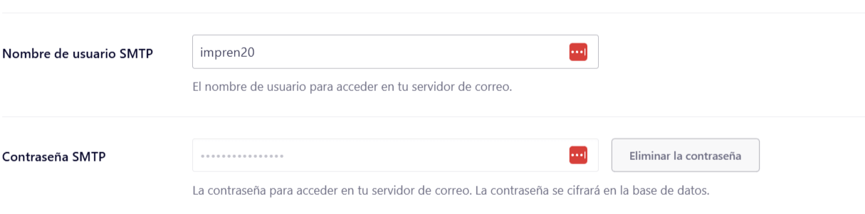 Ten en cuenta que nombre de usuario SMTP es el correo es decir en este caso info@retroboxes.de que vemos es el que tienes creado y el que enviara los mensajes, y en el espacio de abajo que dice contrasena es la clave de ese correo.