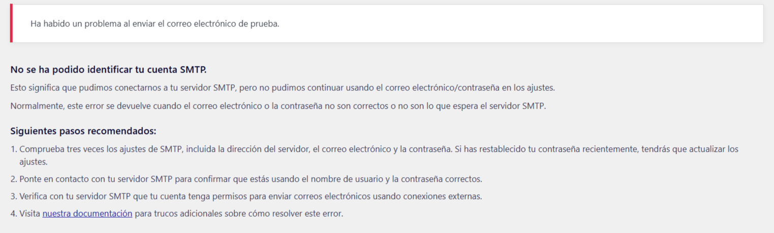 si, lo se, antes había puesto info@retroboxes.de, y daba error "No se ha podido identificar tu cuenta SMTP." y después que cambiar a este de la captura que es el de acceso a wepanel ya no daba ese error, de todos modos lo he cambiado como tu dices y ha vuelto a dar este error