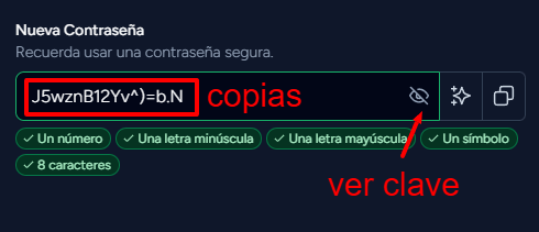 Luego la pegas en la contraseña, pero antes le das a eliminar: