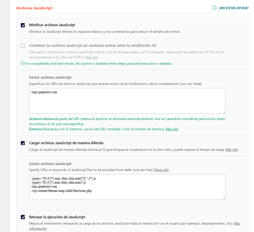 Gracias por la captura, en este caso probaría desactivando por completo las optimizaciones aplicadas a scripts