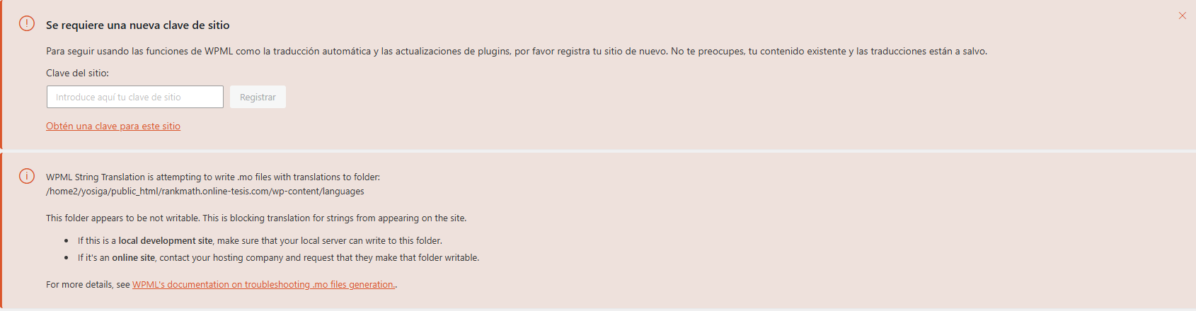 Tuvimos la necesidad de crear otro clon rankmath.online-tesis.com para hacer pruebas con el plugin rack math y presentamos el mismo problema, el diseño de la web en el sitio clon creado se daña. Seguimos las instrucciones como nos la dieron en la consulta titulada Clon no funciona, pero esta ves no tuvimos suerte. Adjuntamos imágenes.