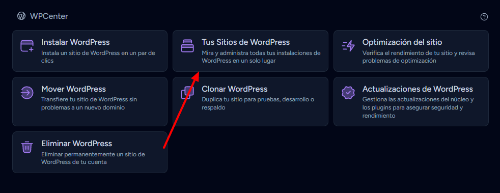 Verifica ingresar a a tu Wp Center en tu wepanel, dentro busca la opción de instalaciones: