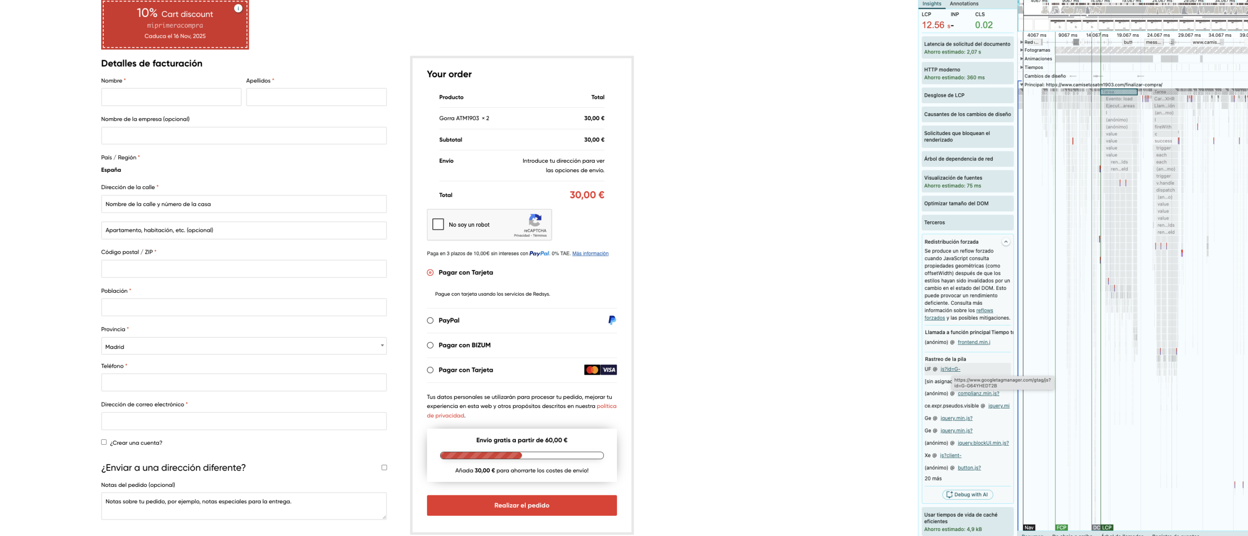 Algún cliente me ha comentado que ha tenido problemas al terminar la compra con el carrito y ya no se si puede ser problema mío o de cobertura del cliente y al ver lo de pagespeed más dudas tengo ahora