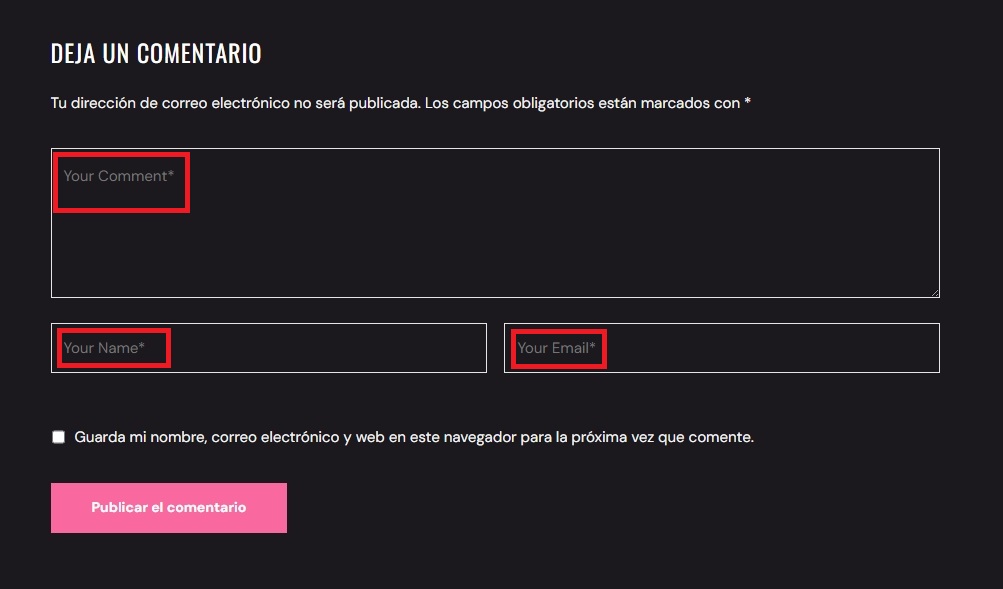 // Placeholder del textarea del comentario