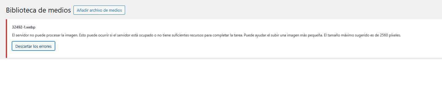 Estoy teniendo problemas a la hora de subir archivos webp, me da siempre el error que adjunto. Como puedo solucionarlo?