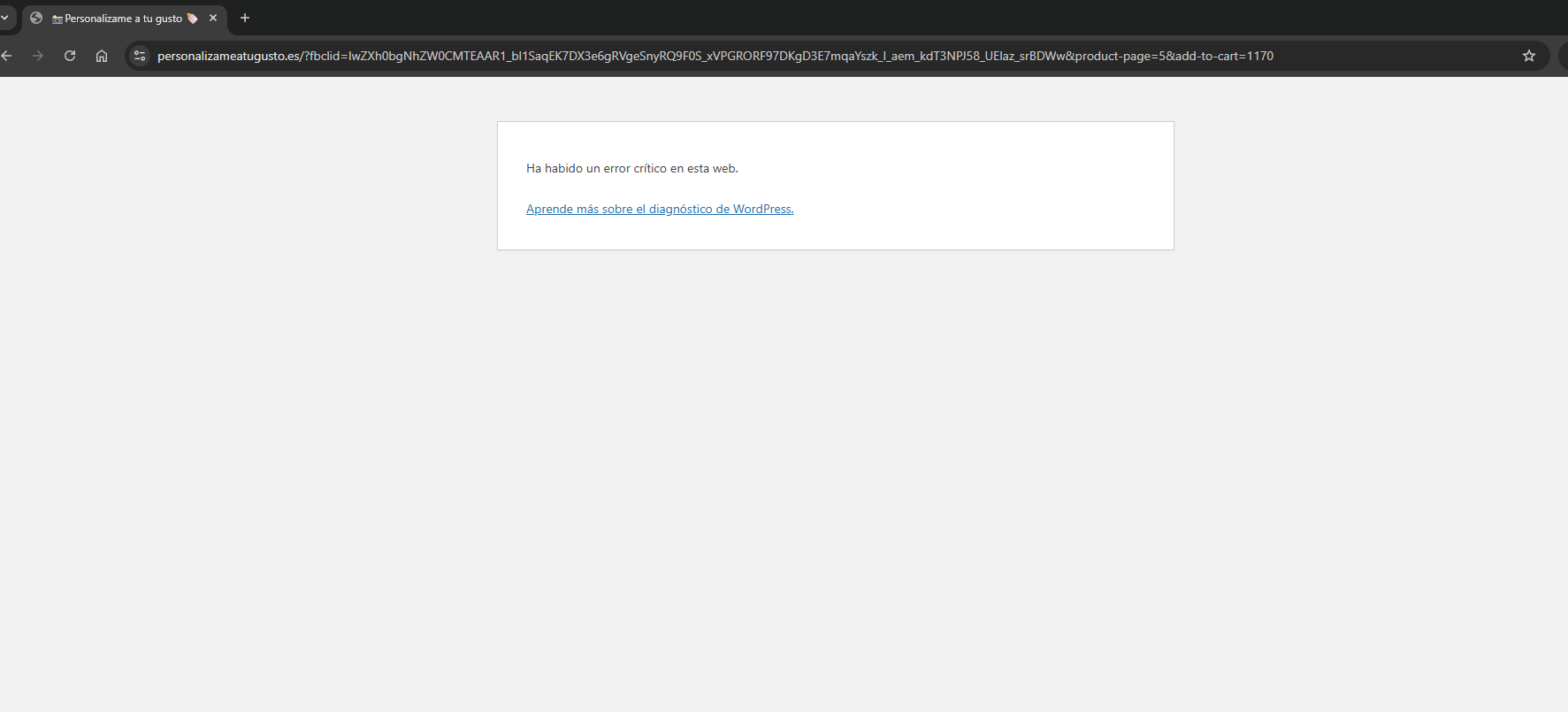 Cuando entro desde el navegador aparece el mensaje de ?Ha habido un error crítico en esta web?.