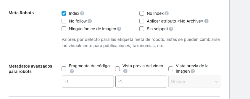 También puedes simplemente desactivar completamente la opción “Metadatos avanzados para robots” dejando todo desactivado (es lo más seguro si no los usas a conciencia).