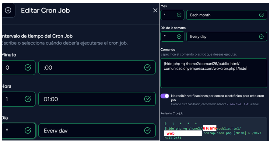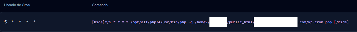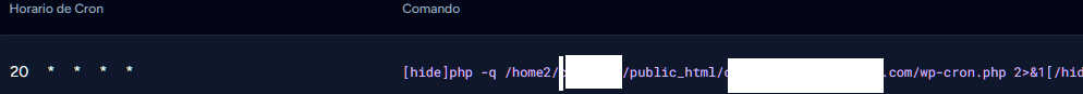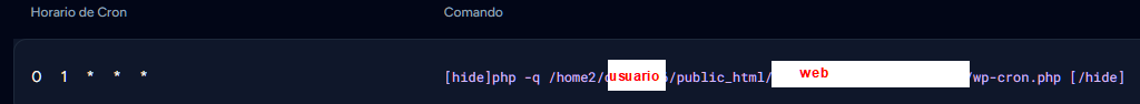 pero al cerrarla tampoco se veía “>/dev/null” y quedaba sólo php -q /home2/comuni26/public_html/dominio.com/wp-cron.php 2>&1