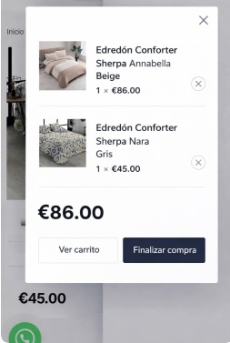 Y otra cosa es que los dos botones ver carrito y Finalizar compra, me gustaría poner poner la letra un pelín mas grande, y el de ver carrito el fondo sea blanco y letras negras con un recuadro finito, y el botón de Finalizar compra fondo negro y letras blancas, envío una foto de como me gustaría que quedara mi carrito. Y las imágenes de los productos un poco mas grandes. Gracias.
