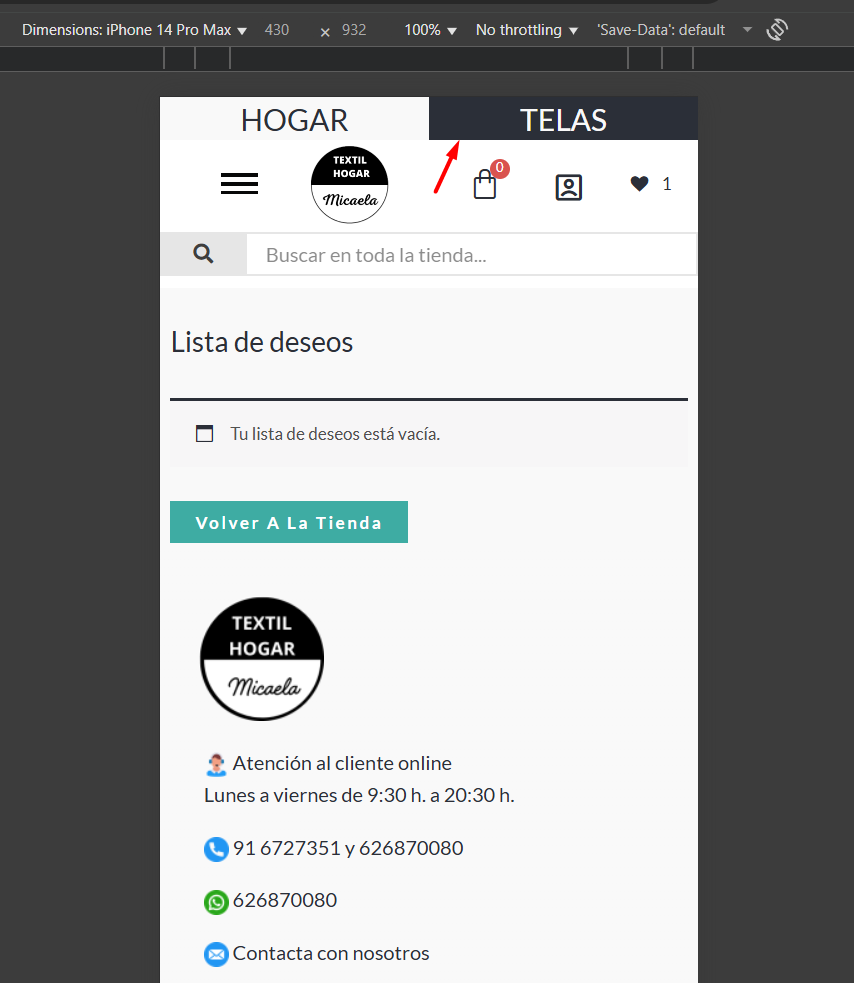Cuando pincho en la pestaña de favorito, mi cuenta, o carrito, se me pone en negro la pestaña de telas que tengo creada arriba del enunciado. No se como hacer para corregir esto.