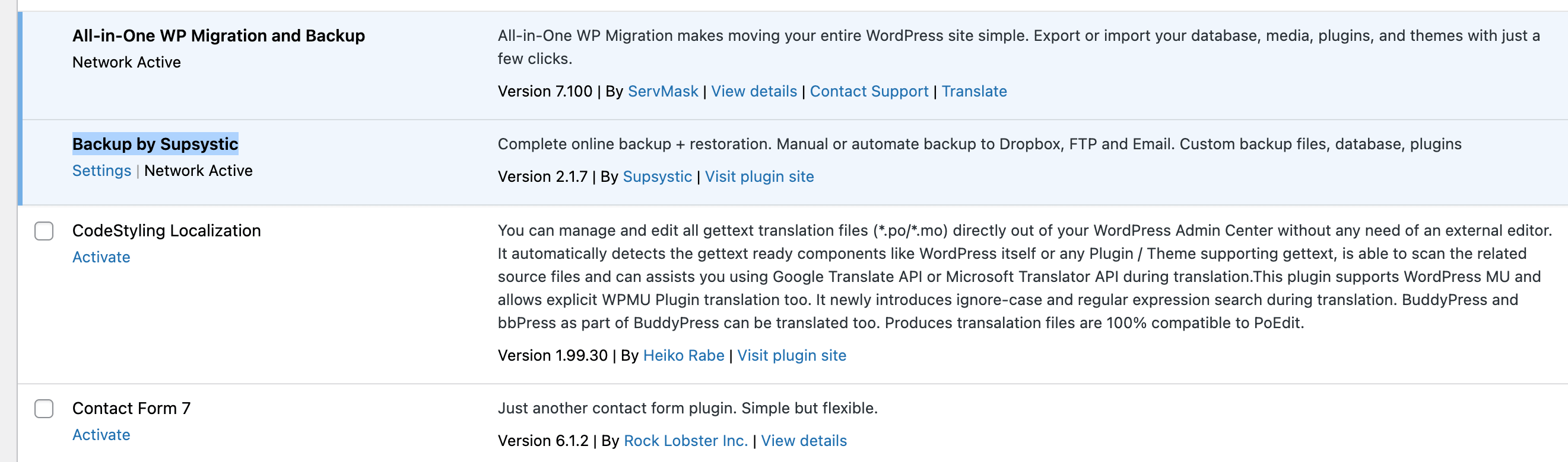 Este error hace referencia al plugin backup by supsystic, prueba a desactivarlo y revisa si se soluciona.
