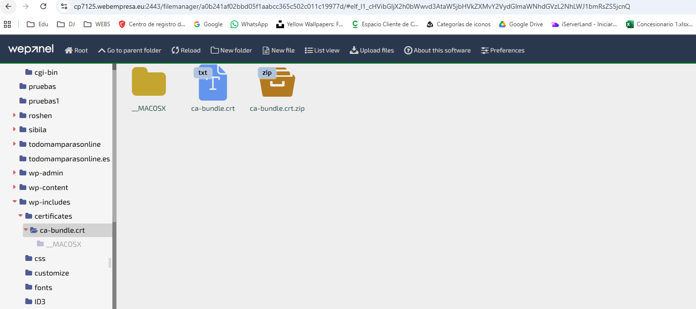 .- Accede a wp-includes -> certificates y elimina el archivo ca-bundle.crt