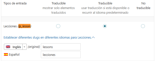 existe un SLUG /lecciones/ que lo genera Learnpress que hace que las lecciones generadas por Learnpress en castellano se vean bajo urls como esta: