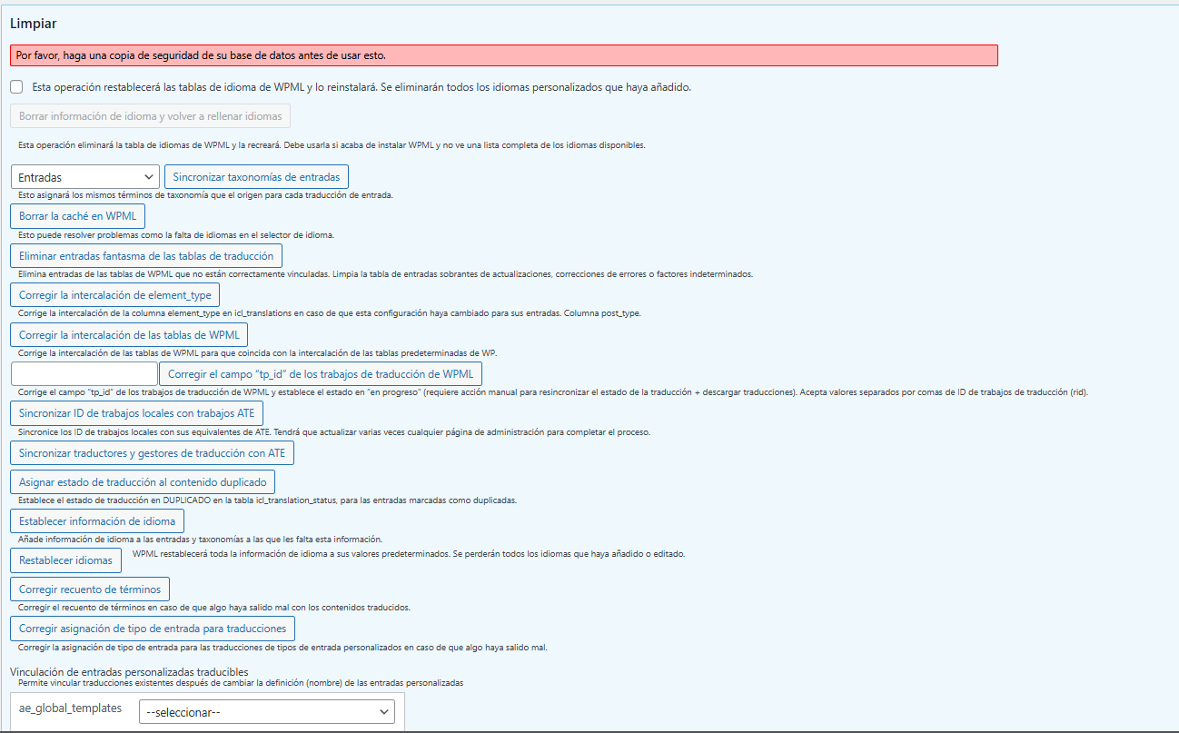 Además he realizado sincronización de jeraquias de taxonomias, solucionado de problemas de WPML dentro de su sección de soporte (con saneamientos que tiene para su BBDD) creo que he probado casi todo 🙁 y el dichoso problema persiste