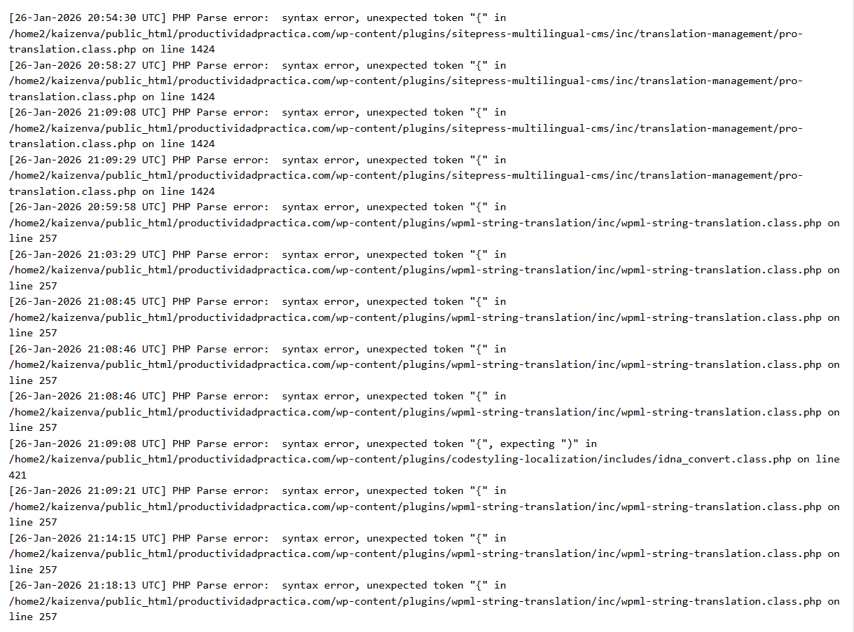 Donde los plugins WPML Multilingual CMS y WPML String Translation parecen ser los responsables