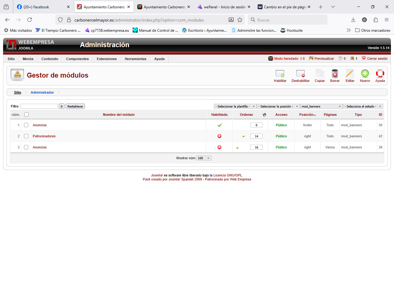 Intentos: He revisado el Gestor de Artículos y el Gestor de Módulos, pero no encuentro la opción de edición.