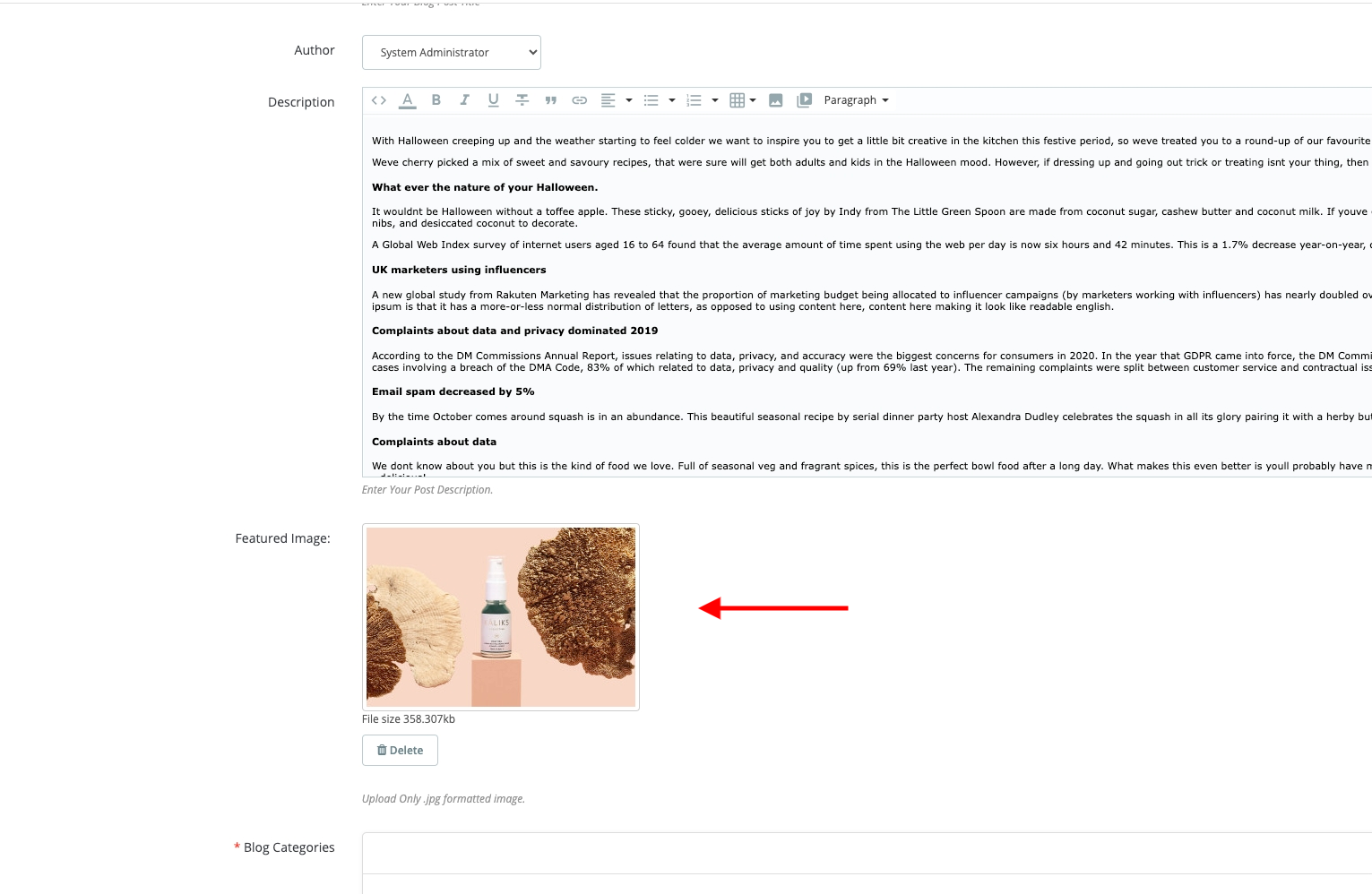 hola, tengo la version 8 de prestashop, la web es una tienda virtual y tiene un blog que se accede desde la web. Las imagenes que pongo en el blog, no aparecen, mientras que si las pongo dentro de la descripcion, si que salen, es decir, "featured image" la que pongo aqui que se supone se sube al servidor, no me aparece. ¿que puedo hacer?