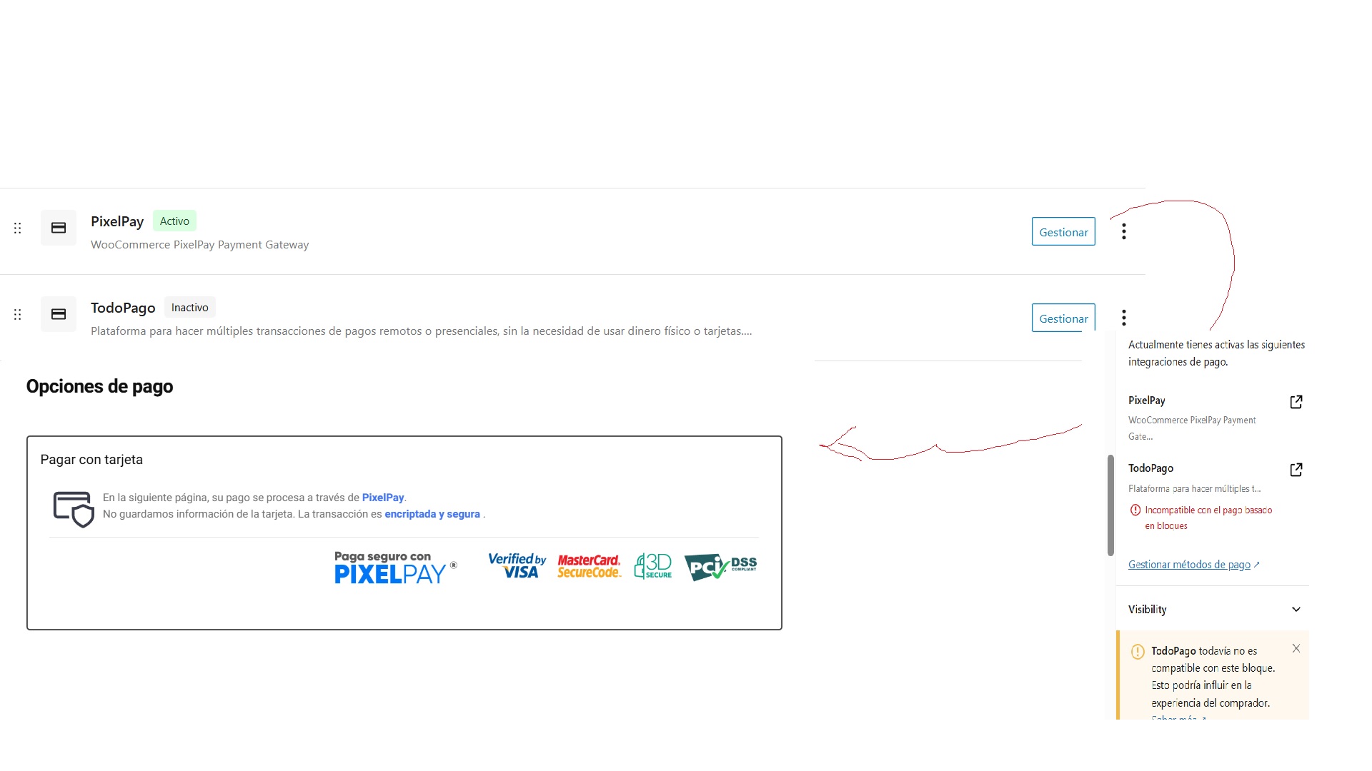 En nuestra tienda necesitamos tener activas dos pasarelas de pago: PixelPay y TodoPago. Actualmente, al activar ambas, la pasarela TodoPago no se muestra correctamente (solo funciona PixelPay).