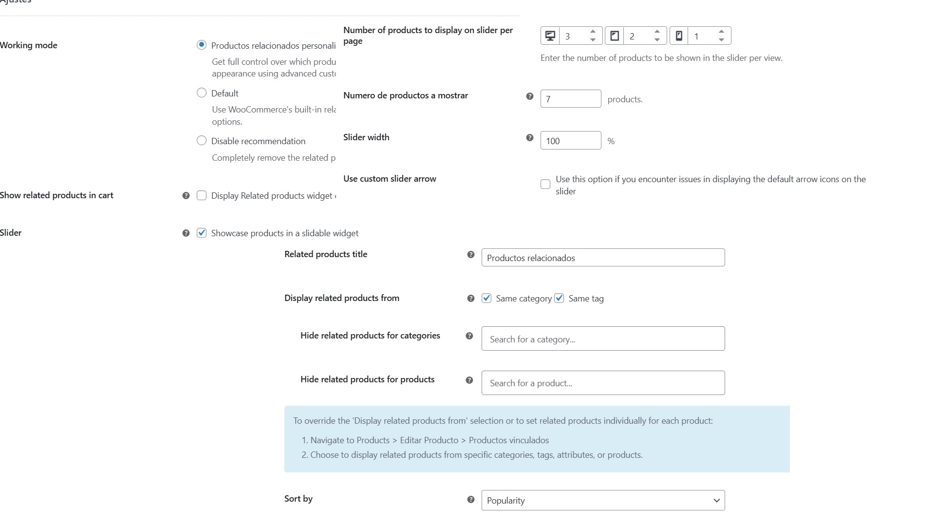 Has podido validar desde la configuracion del plugin si hay un apartado donde se permita añadir el widget correspondiente a los productos relacionados?