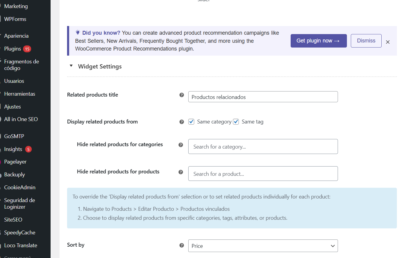 .- Accede a plugins y desactiva el plugin Related Products
