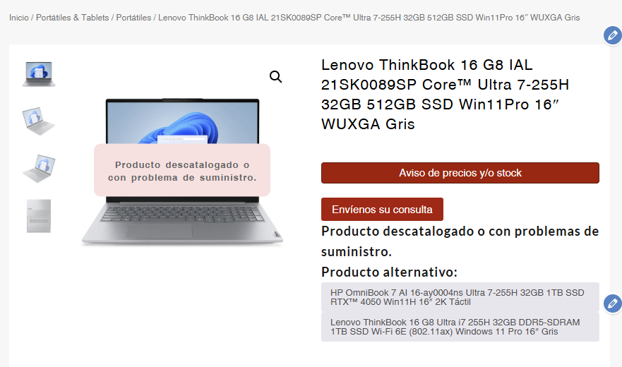 Otra cosa sería, por los atributos o de alguna forma, poder indicar cual es la alternativa de compra o si ha cambiado de referencia o SKU (esto ya sería para otra consulta).