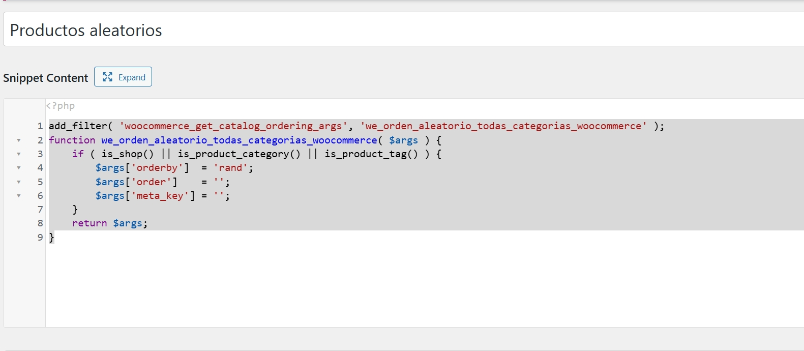 add_filter( 'woocommerce_get_catalog_ordering_args', 'we_orden_aleatorio_todas_categorias_woocommerce' );