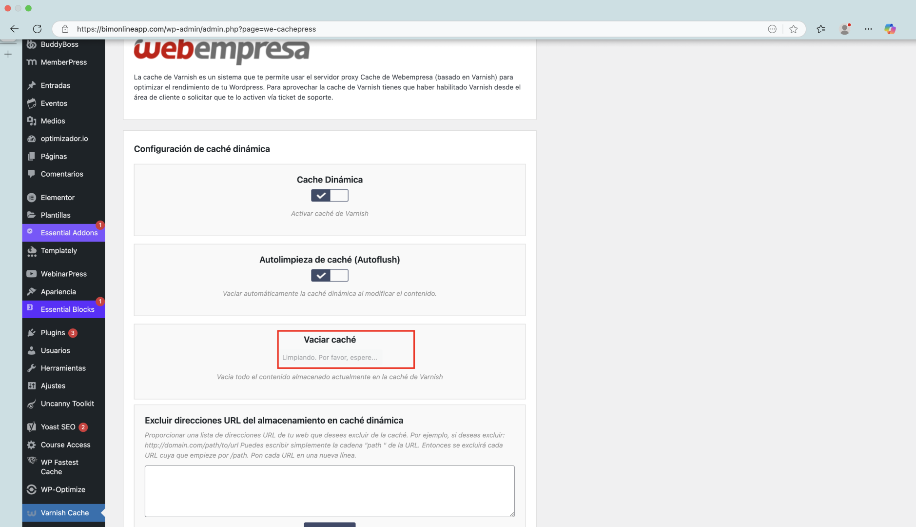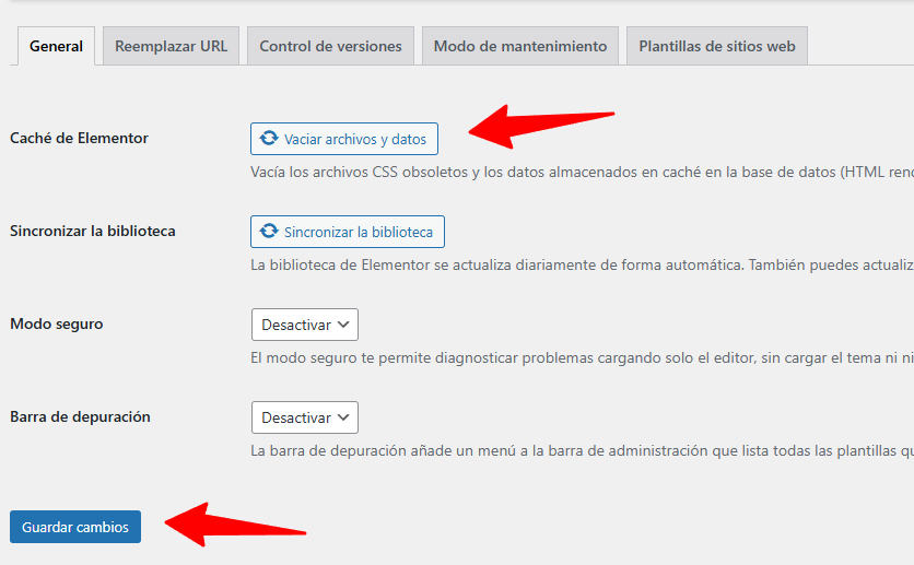 Una vez realizada, limpiar nuevamente todas las caches del sitio web.