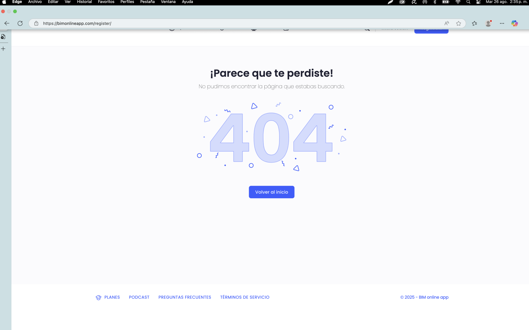Por otro lago, el botón registrarse tampoco lleva a esa página.